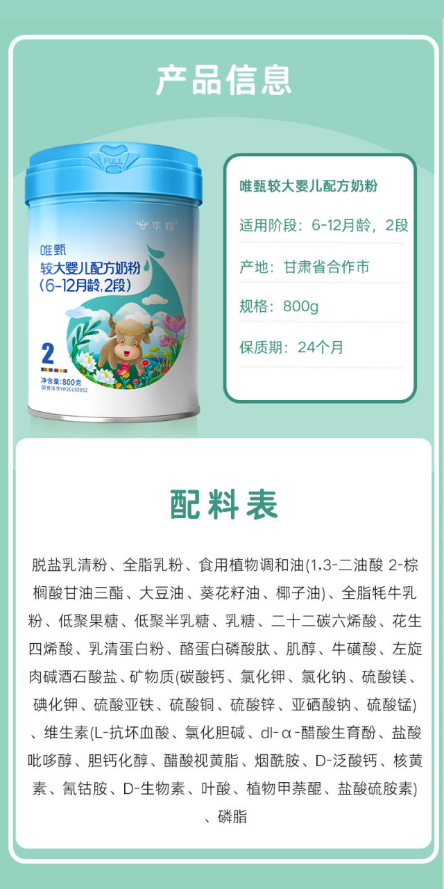 唯甄较大婴儿配方奶粉(6-12月龄,2段)