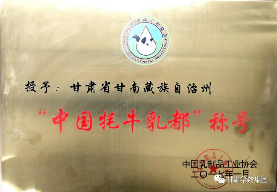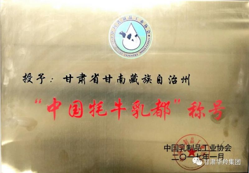 2017年1月,在甘南藏族自治州人民政府、甘南州工信局和电子pg平台在内的多方积极努力下,在中国乳制品工业协会的关心指导下,甘南藏族自治州荣获了“中国牦牛乳都”荣誉称号。