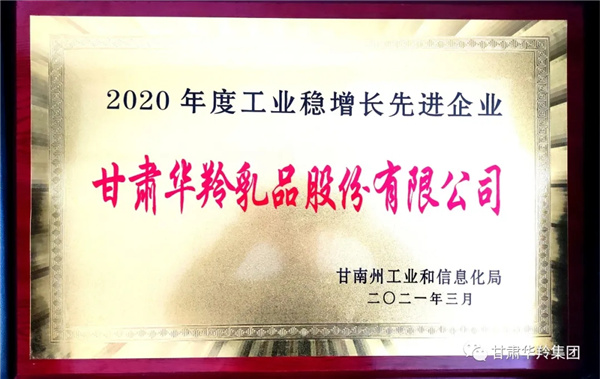 近日,为激励表彰甘肃华羚乳品股份有限公司在2020年度全州促生产、保增长,工业经济健康平稳可持续发展做出的贡献,甘南州工业和信息化局授予甘肃华羚乳品股份有限公司“2020年度工业稳增长先进企业”荣誉称号!
